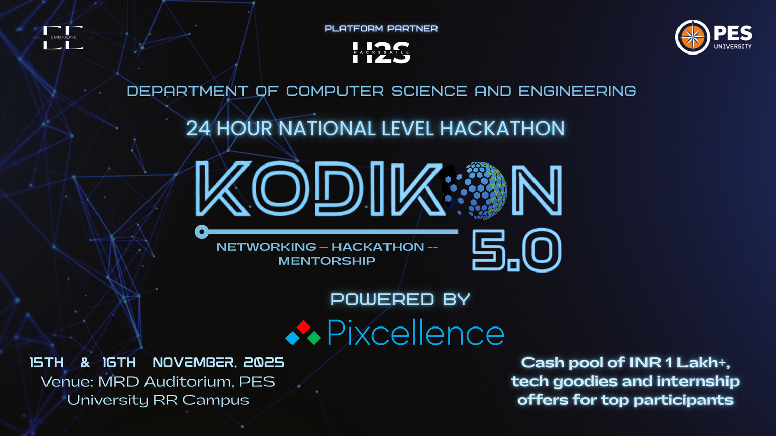 Kodikon 5.0 is a 24 hour national level hackathon organised under by The Embrione, official technical vertical under the Department of Computer Science and Engineering