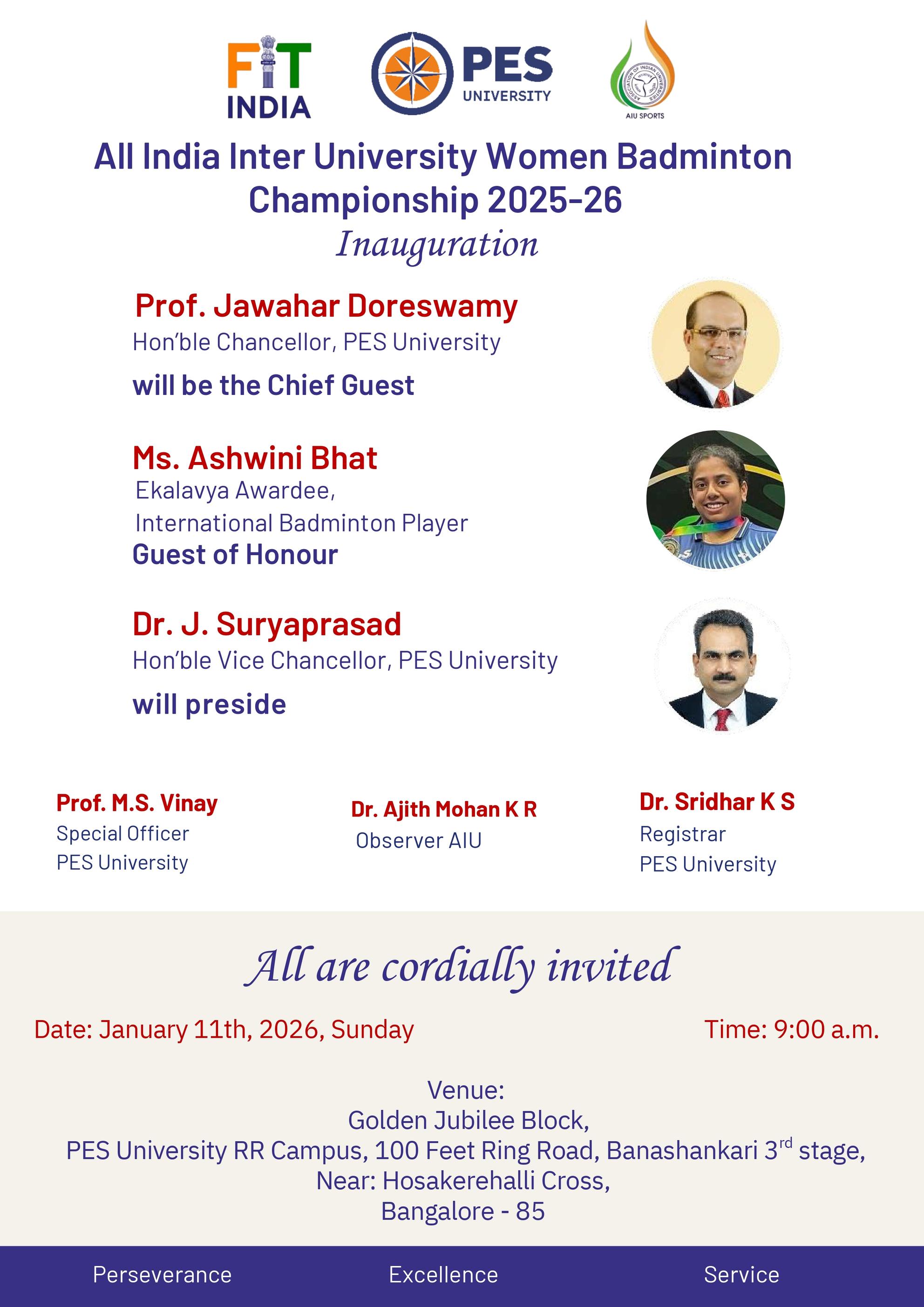 The Department of BBA Sports Management, in coordination with the Sports Department, is organizing the All-India Inter-University Women’s Badminton Championship 2026, scheduled to be held from January 11 to 14 2026.