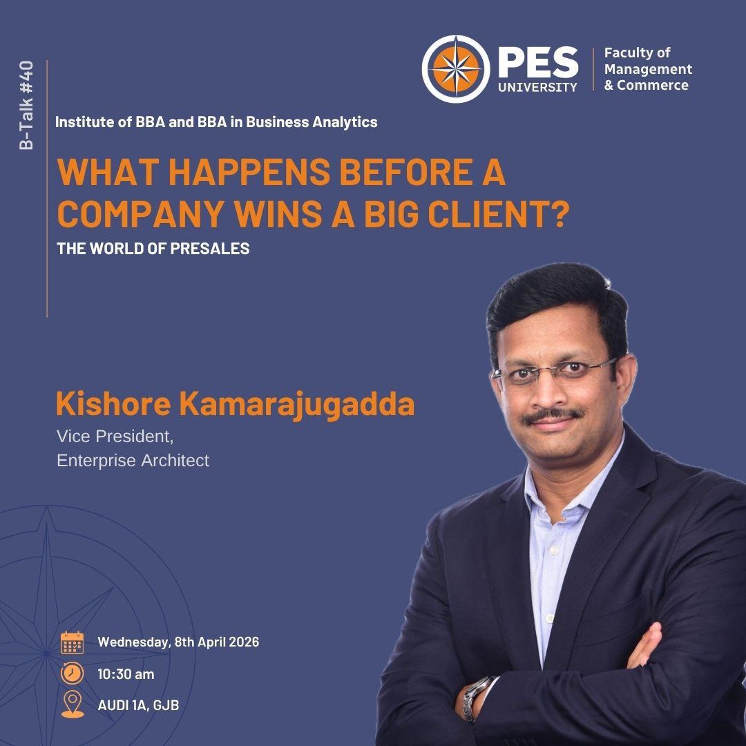 The Institute of BBA and BBA (Business Analytics) is organising its 40th B-Talk, Join us for an insightful session that explores the strategic, operational, and human efforts that go into securing major clients. This session will uncover the behind-the-scenes processes, from pitching and relationship building to negotiation and execution, that drive business success.