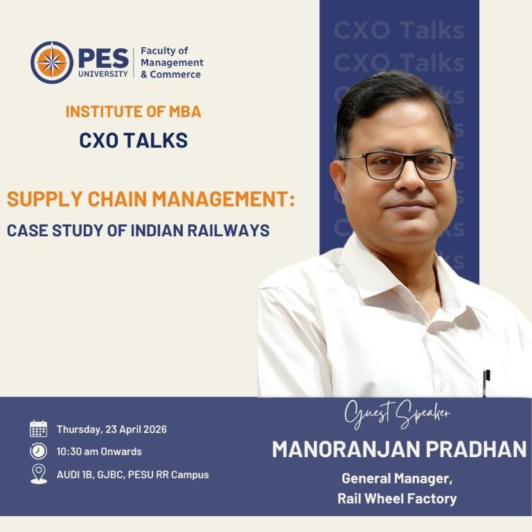 The Faculty of Management and Commerce, Institute of MBA, is organising an engaging CXO Talk on the 23rd April, 2026, featuring Manoranjan Pradhan, General Manager, Rail Wheel Factory. He will address the MBA students on the topic
