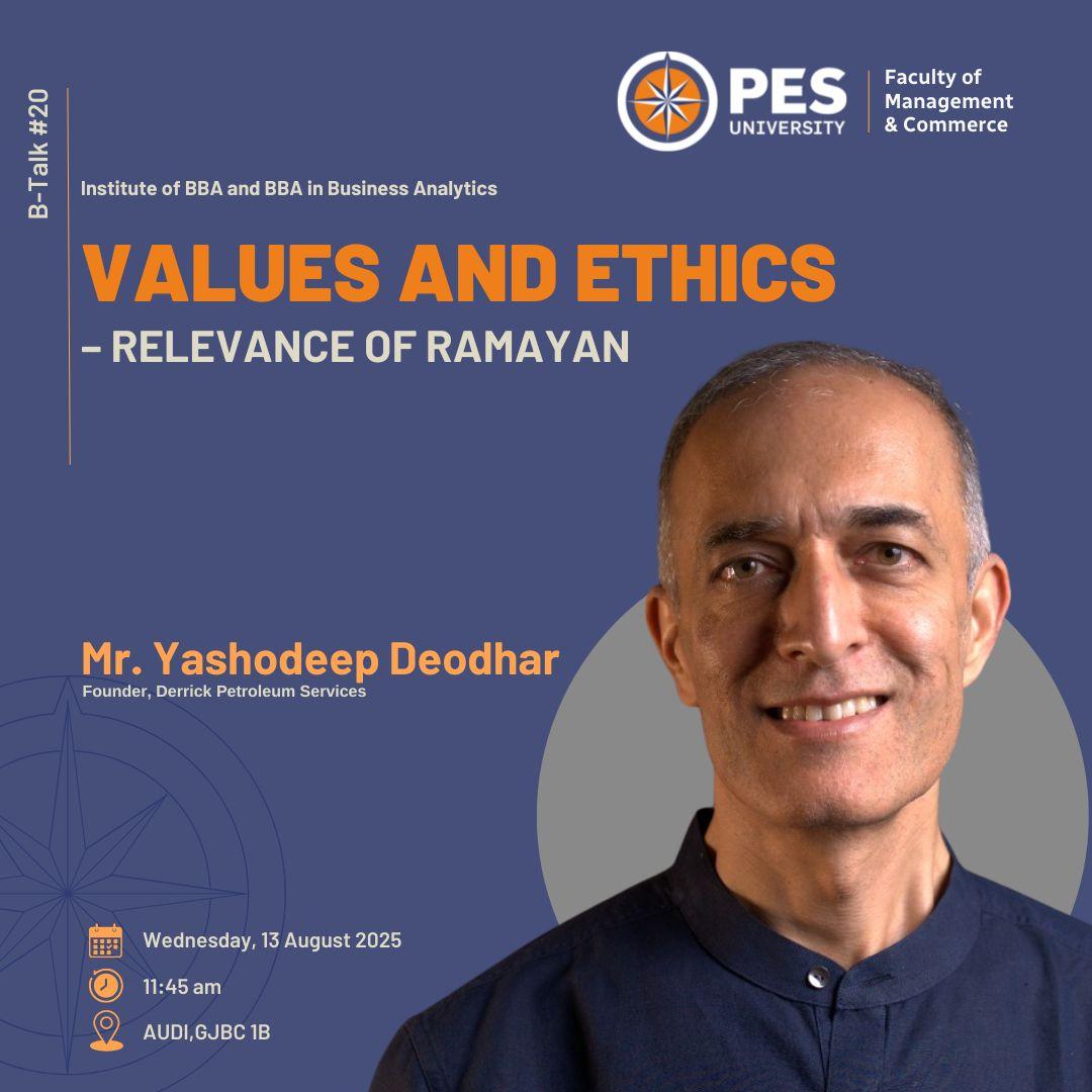 Yashodeep Deodhar, Founder, Derrick Petroleum Services will delve into the core principles on "Values and Ethics – Relevance of Ramayan." This interactive session will provide students with valuable insights into the timeless lessons of the Ramayan and their relevance in today’s world of values and ethics for Business Management students.