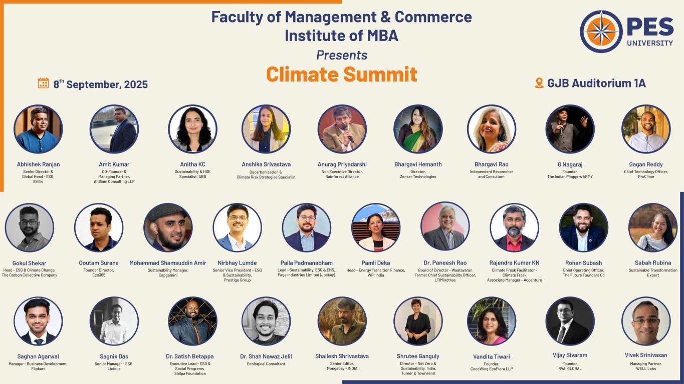 We are delighted to host an inspiring lineup of climate leaders, sustainability advocates, and industry experts for a day of meaningful engagement with our students. The event will feature four thought-provoking panel discussions and multiple keynote sessions, addressing one of the most urgent challenges of our time—climate change.