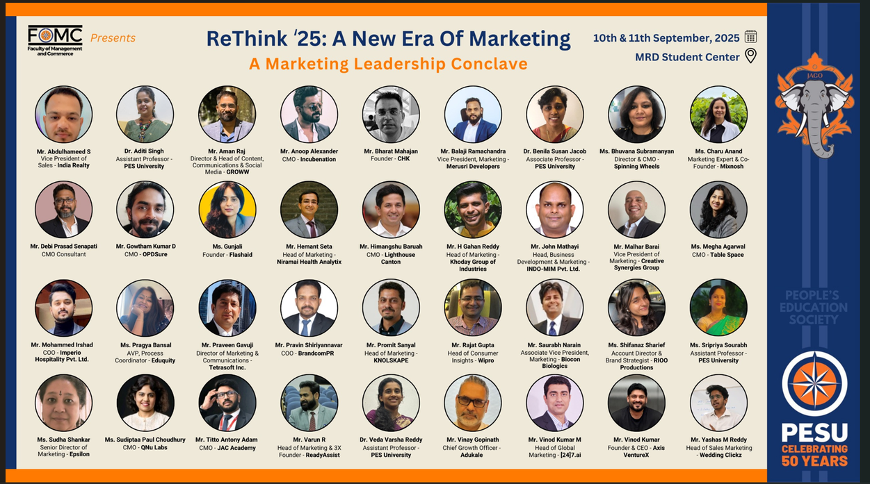 The Institute of Management & Commerce PES University, Electronic City Campus proudly presents its flagship Marketing Leadership Conclave on September 10th & 11th, 2025.