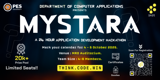 Mystara is a 24-hour application development hackathon hosted by INIT Club on October 4 & 5, 2025 with exciting prizes, certificates, and goodies.